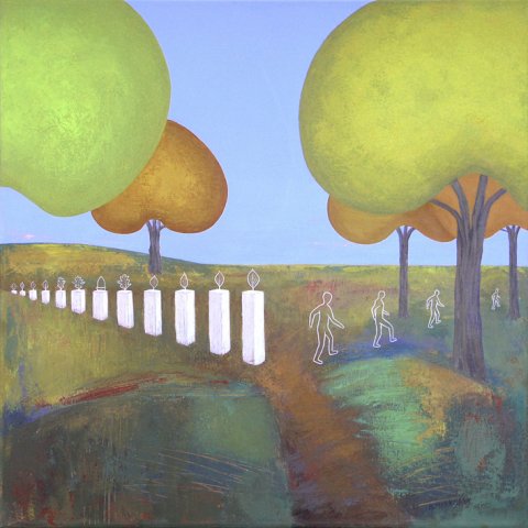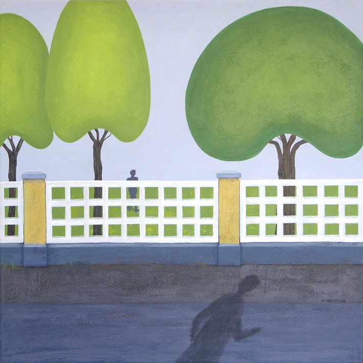 Indtryk af velkendte bygninger, detaljer af gammelt håndværk som vinduer, døre, mønstre i tegl. en forfalden mur eller parken, som i hast passeres af motionsløbere, men også betonbygninger, pladser med henkastet affald, plankeværker med plakater og graffiti, trafiksignaler og skilte bearbejdes i mine malerier.